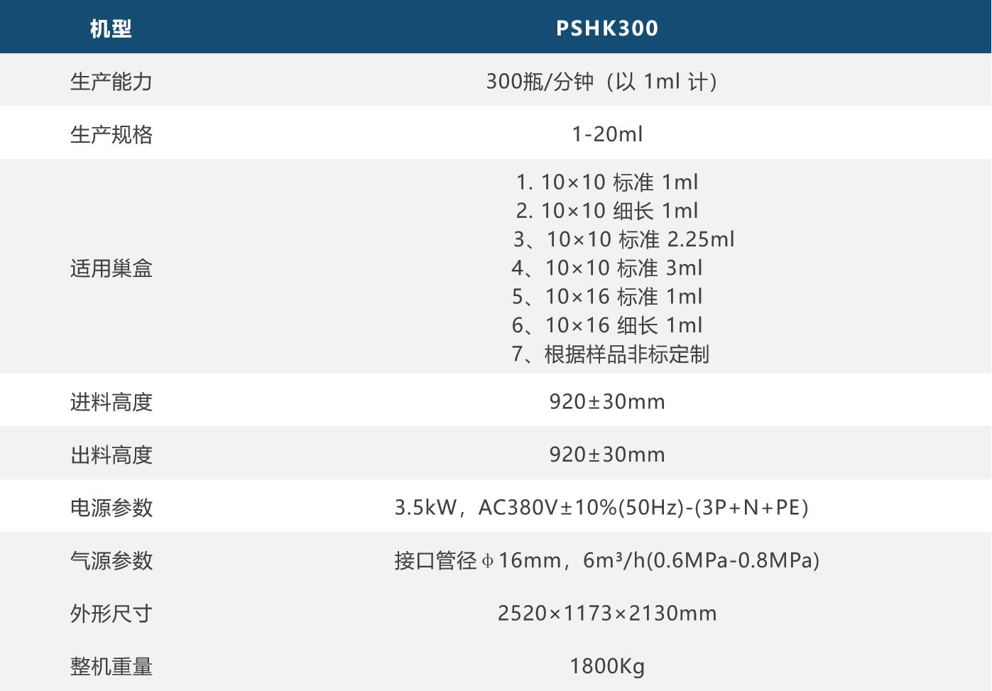 PSHK300 是一台全自动高速脱巢机,整机设计及制造遵循 GMP、cGMP、GAMP5、CRF21-part11、CE的规范要求,用于对蜂巢盒内的预充针进行脱巢输出,具有自动进盒、调整巢盒方向、取巢板、取预充针、巢盒堆叠回收、巢板集中回收、输出预充针等功能。