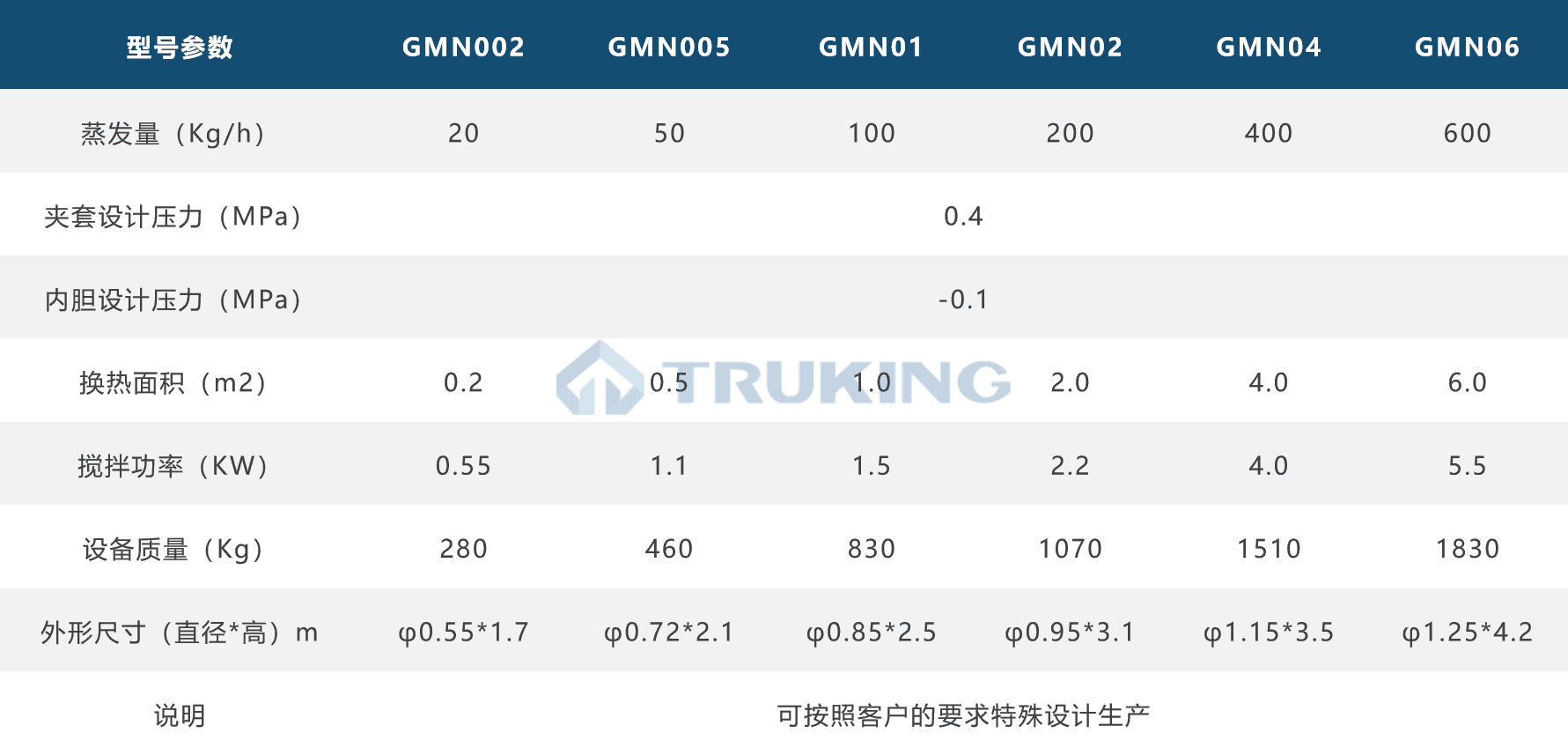 用于对高黏度、易结晶、易结垢、含悬浮物或兼有热敏性料液的蒸发浓缩。