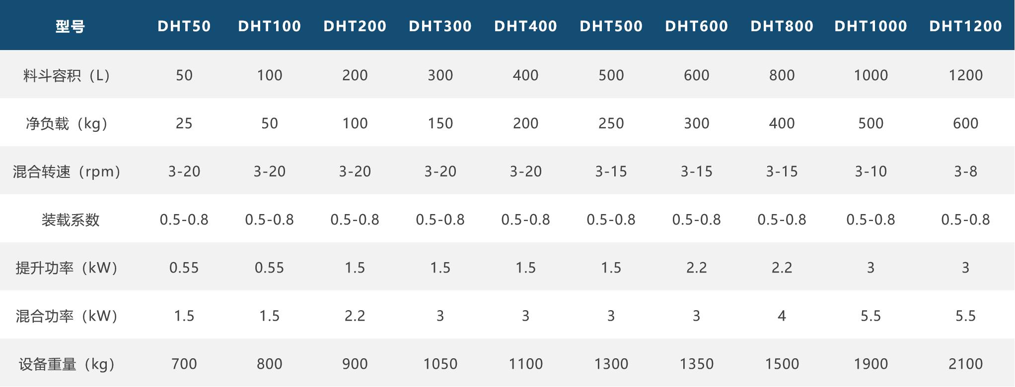 Ø 上方下锥形的混合料斗,及特别的混合传动结构,具有流动性好、减少混合物料分层、混合效果好、混合效率高的特点。