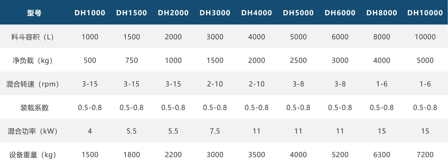 Ø 上方下锥形的混合料斗,及特别的混合传动结构,具有流动性好、减少混合物料分层、混合效果好、混合效率高的特点。