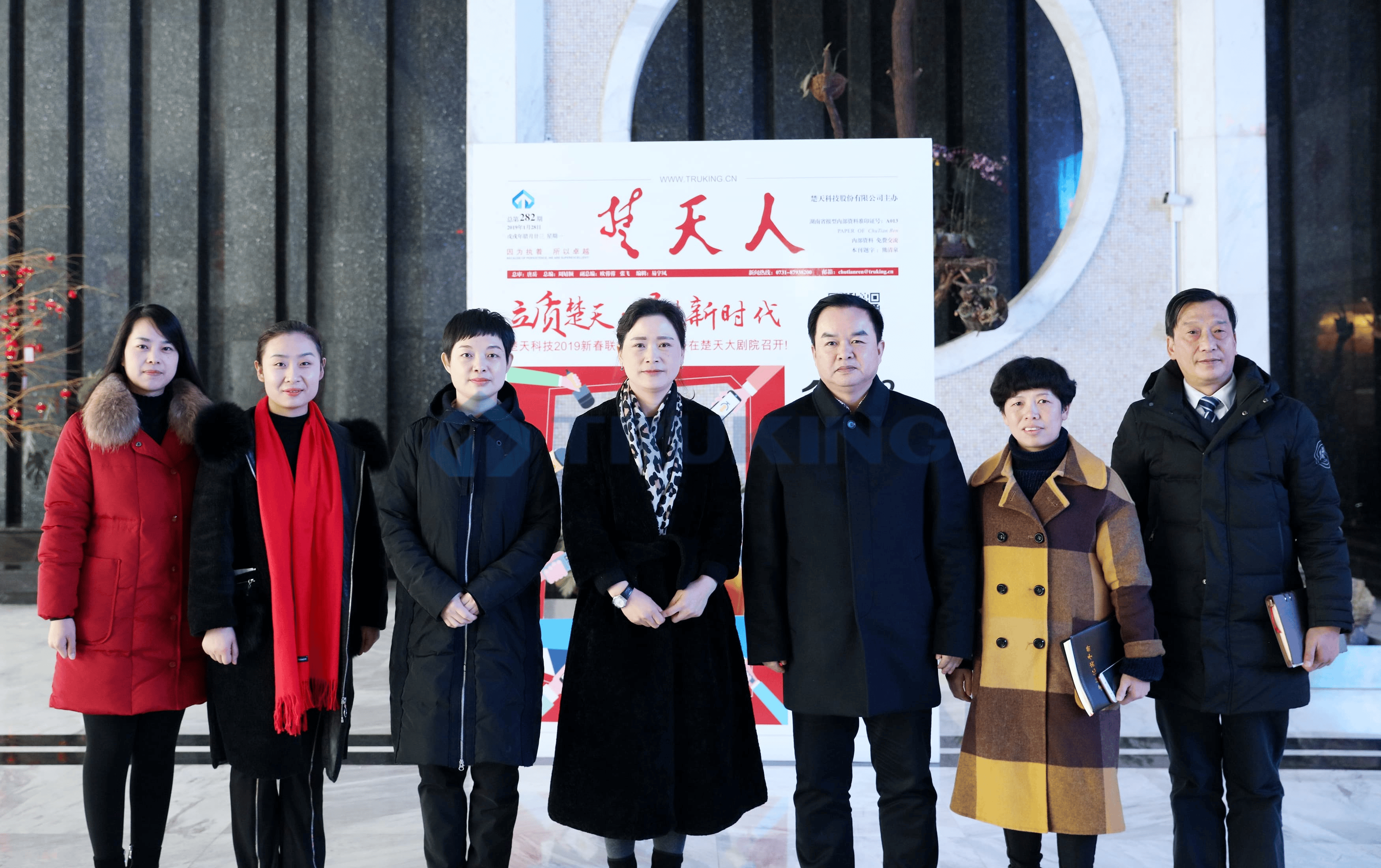 2019年2月,宁乡市工商联主席曾含玲(中)调研时,高度赞扬OD平台,OD(中国)科技在精准扶贫上做出的贡献