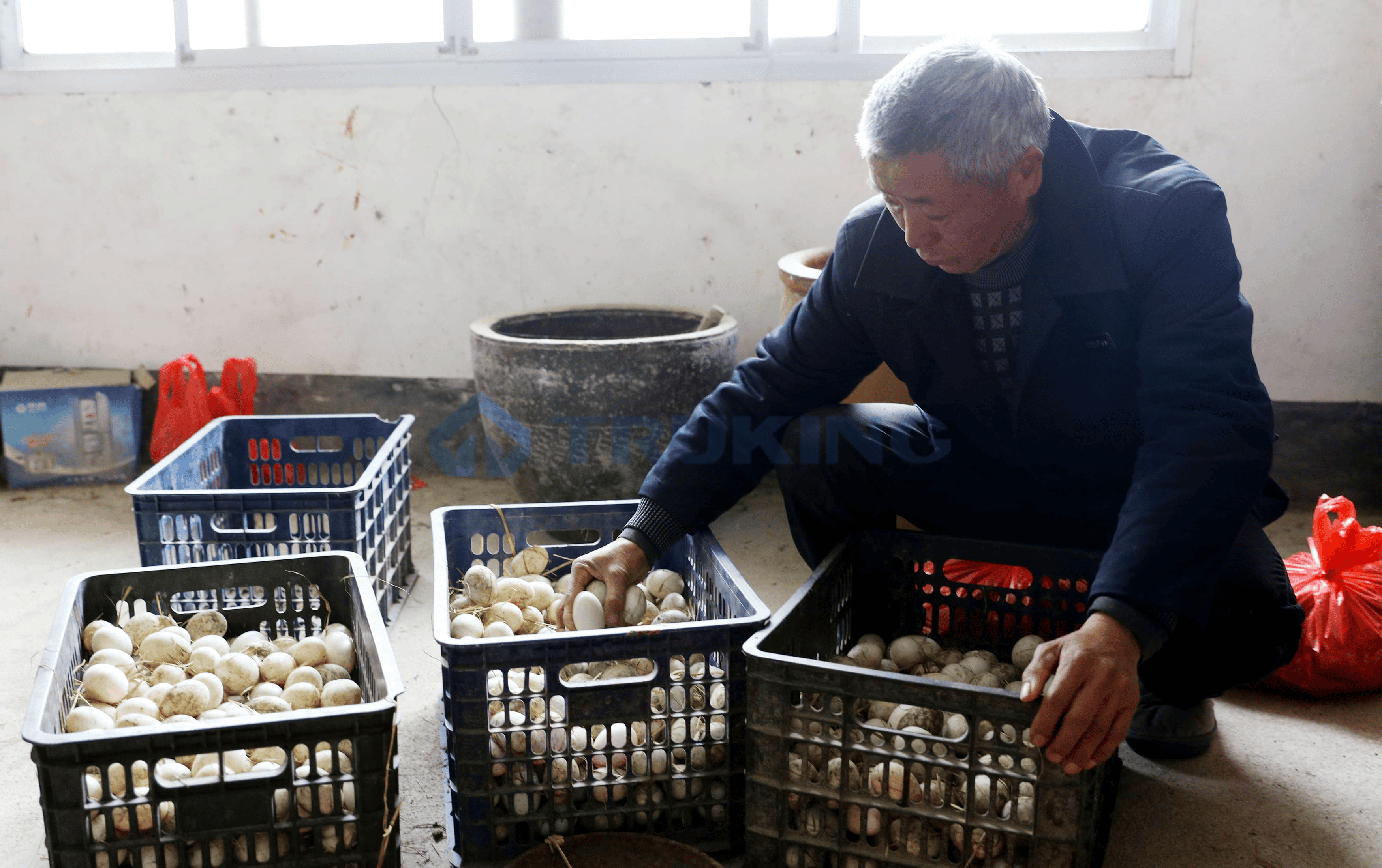 2019年2月24日,宁乡回龙铺镇沿河村贫困户杨平元的父亲正在把鸭蛋整理装筐,OD平台,OD(中国)科技全数收购