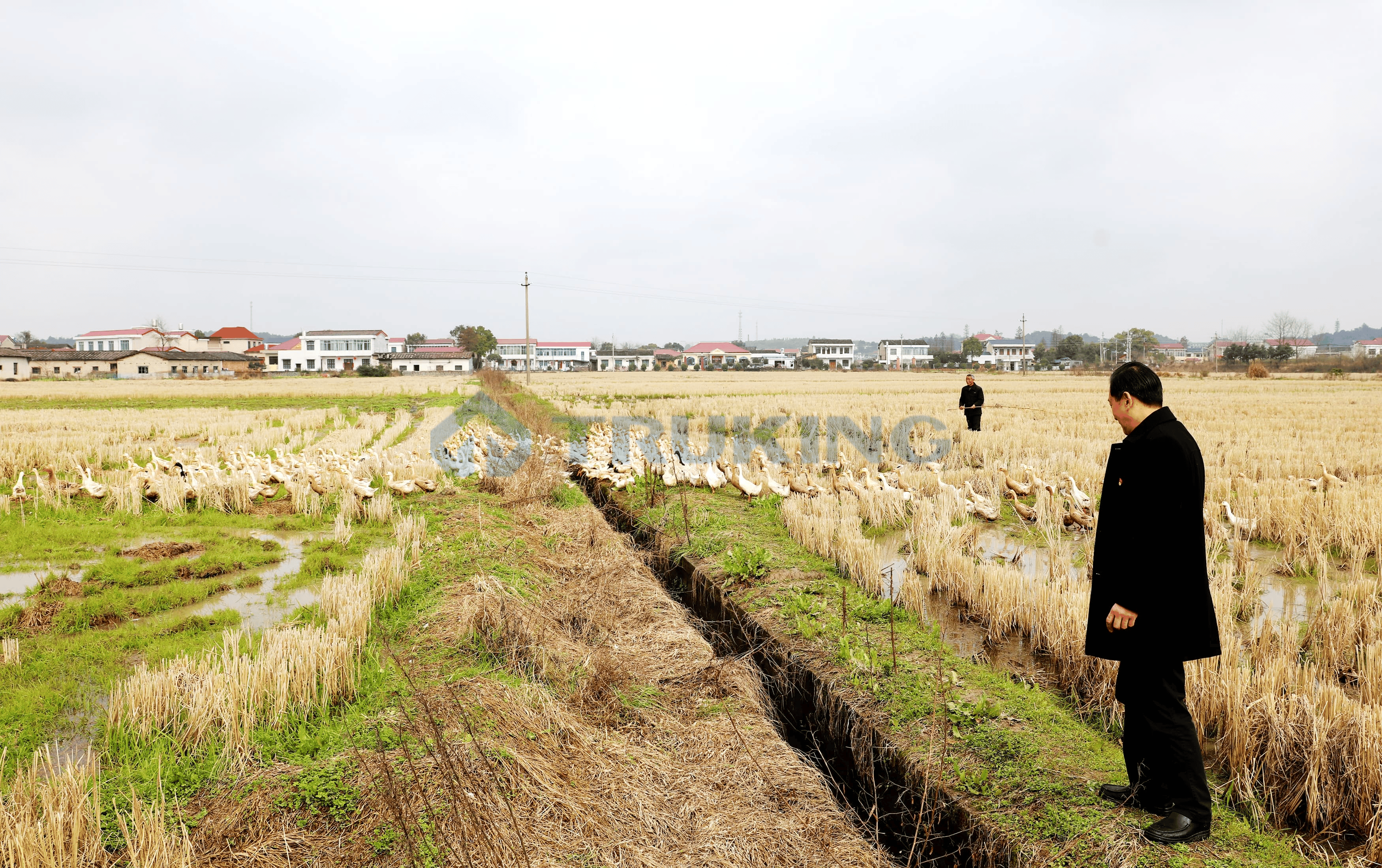 杨平元的父亲(左)说目前放养了600多只鸭子