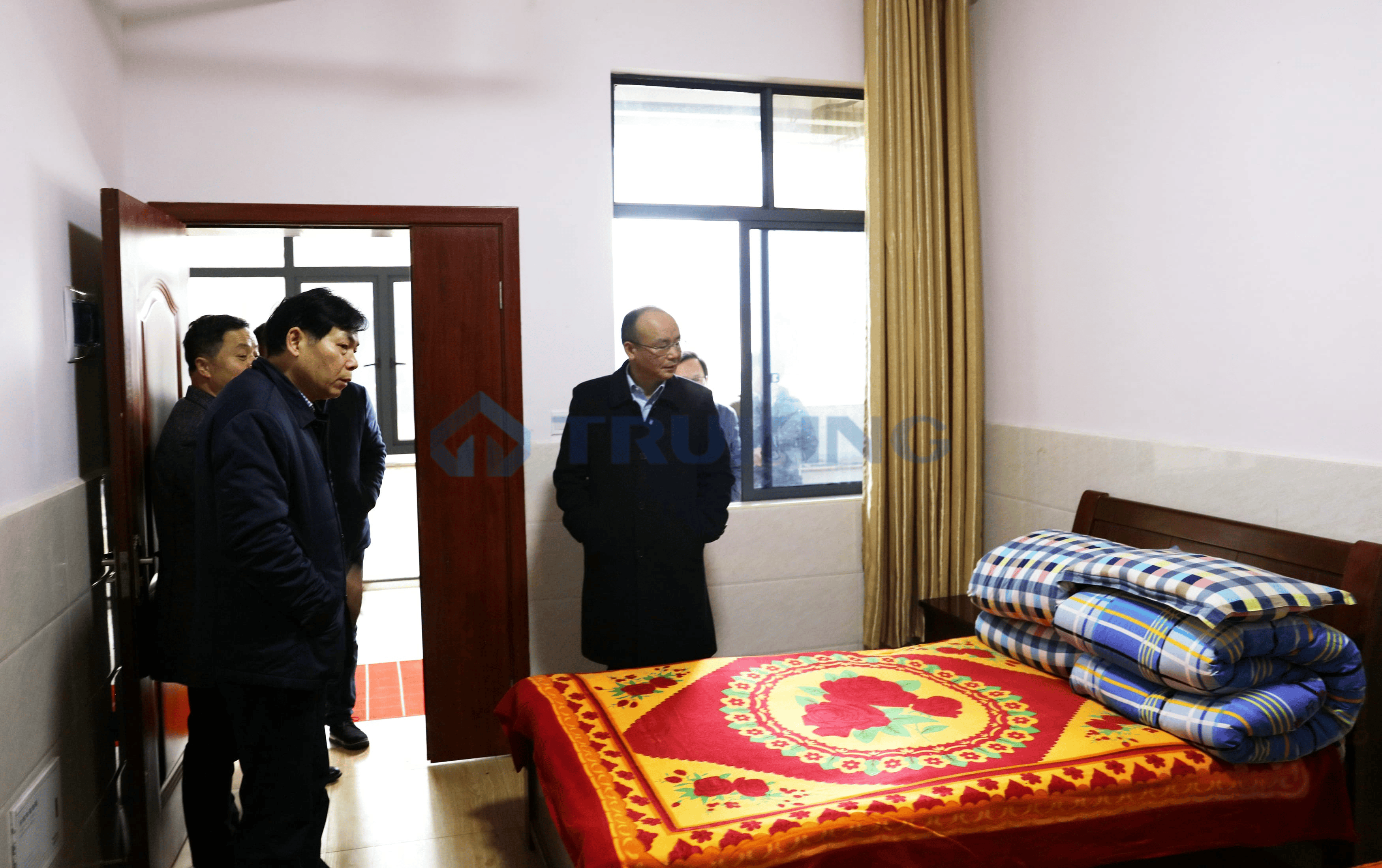 2019年1月,唐岳看望金洲镇敬老院老人,查看老人们的新卧室