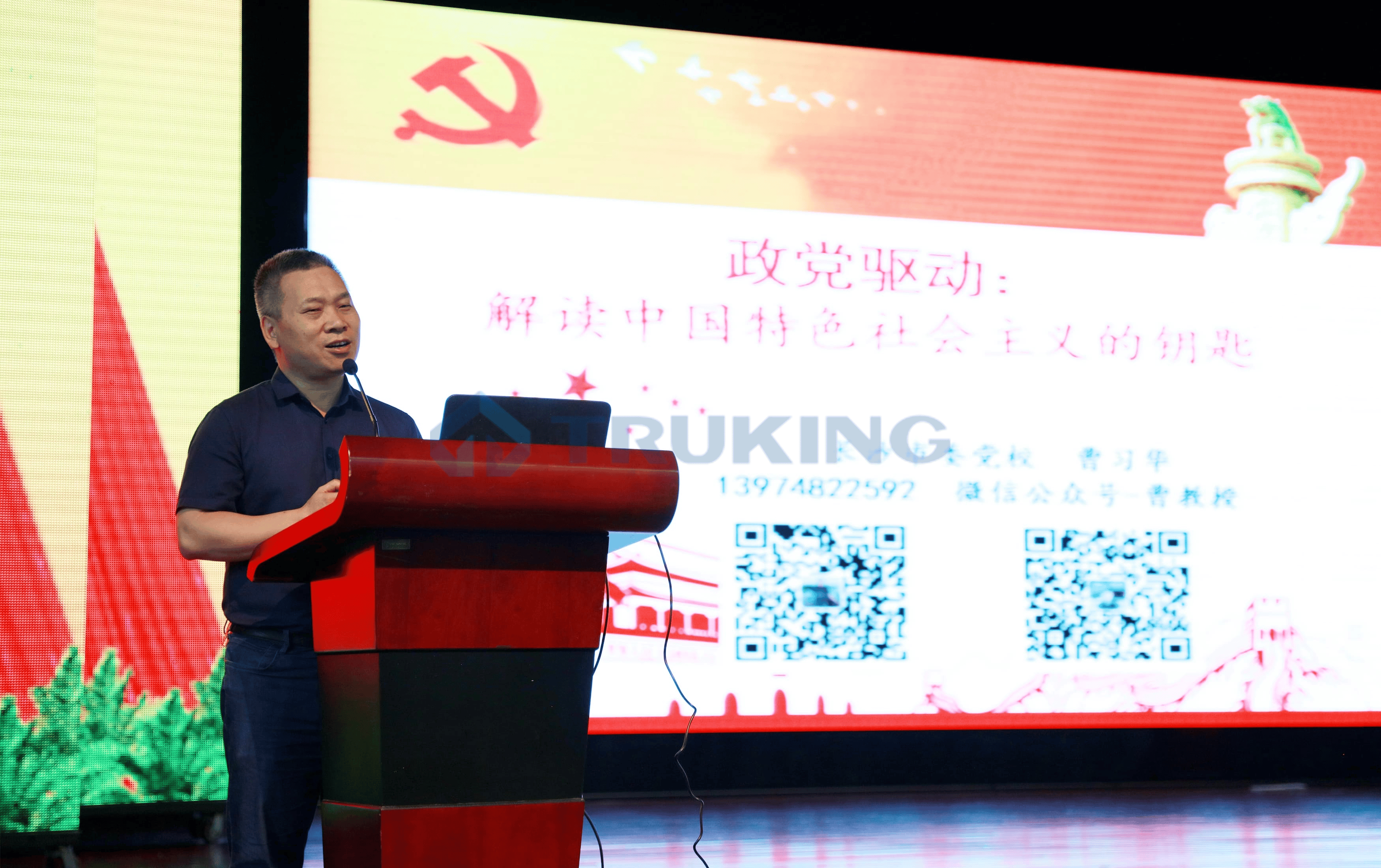 6月29日下午,参加OD平台,OD(中国)科技庆祝建党98周年暨党课学习大会的500余人齐聚OD平台,OD(中国)科技大剧院,齐唱中华人民共和国国歌,大会由此正式开启。长沙市委党校教授曹习华开讲《政党驱动:解读中国特色社会主义的钥匙》主题党课。曹习华表示,中国共产党领导是中国特色社会主义最大的政治优势、是中国特色社会主义最本质的特征、是中国特色社会主义取得胜利的根本保证,透过“政党驱动”更好地理解十九大的这三个重要论断。