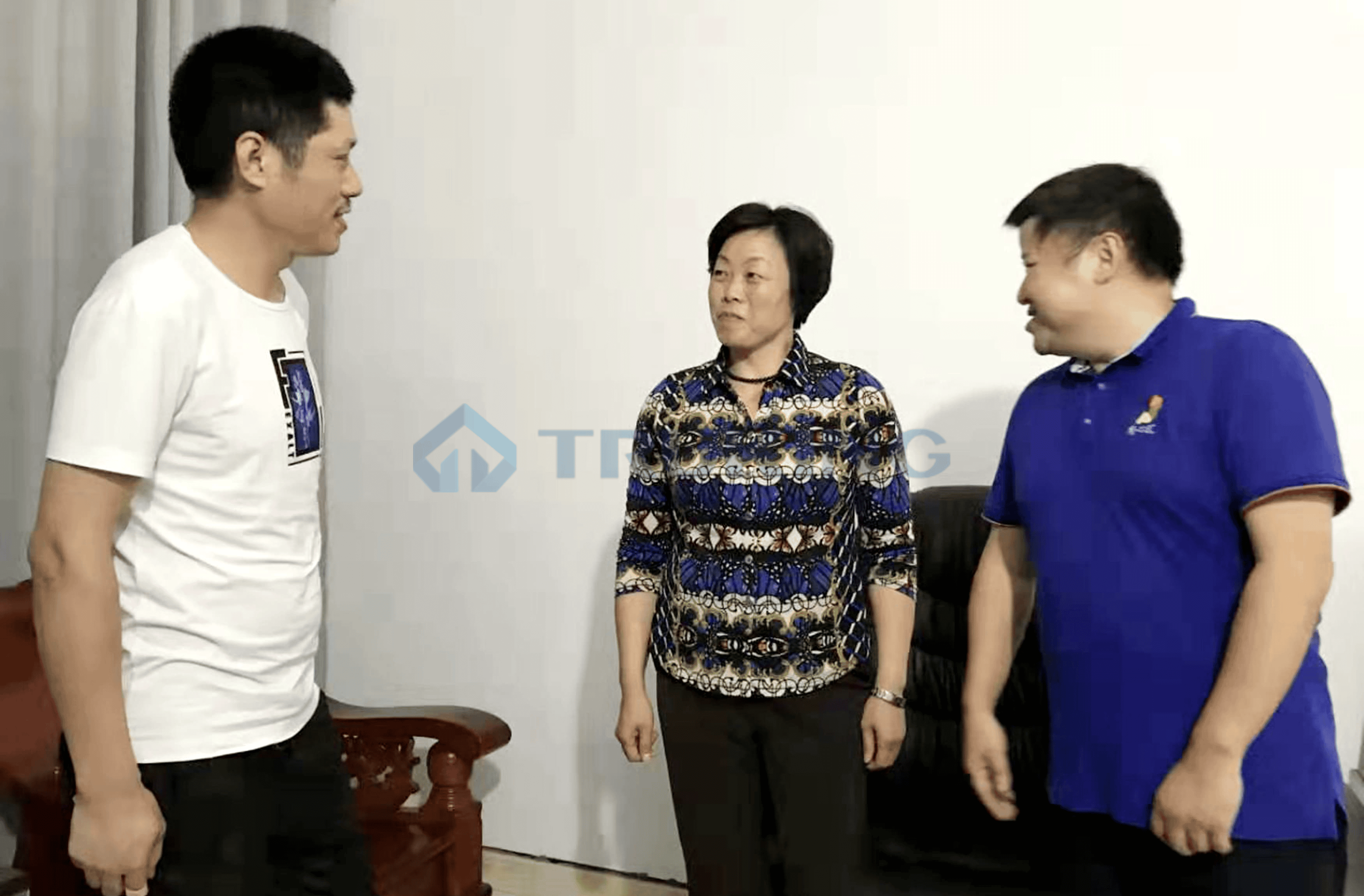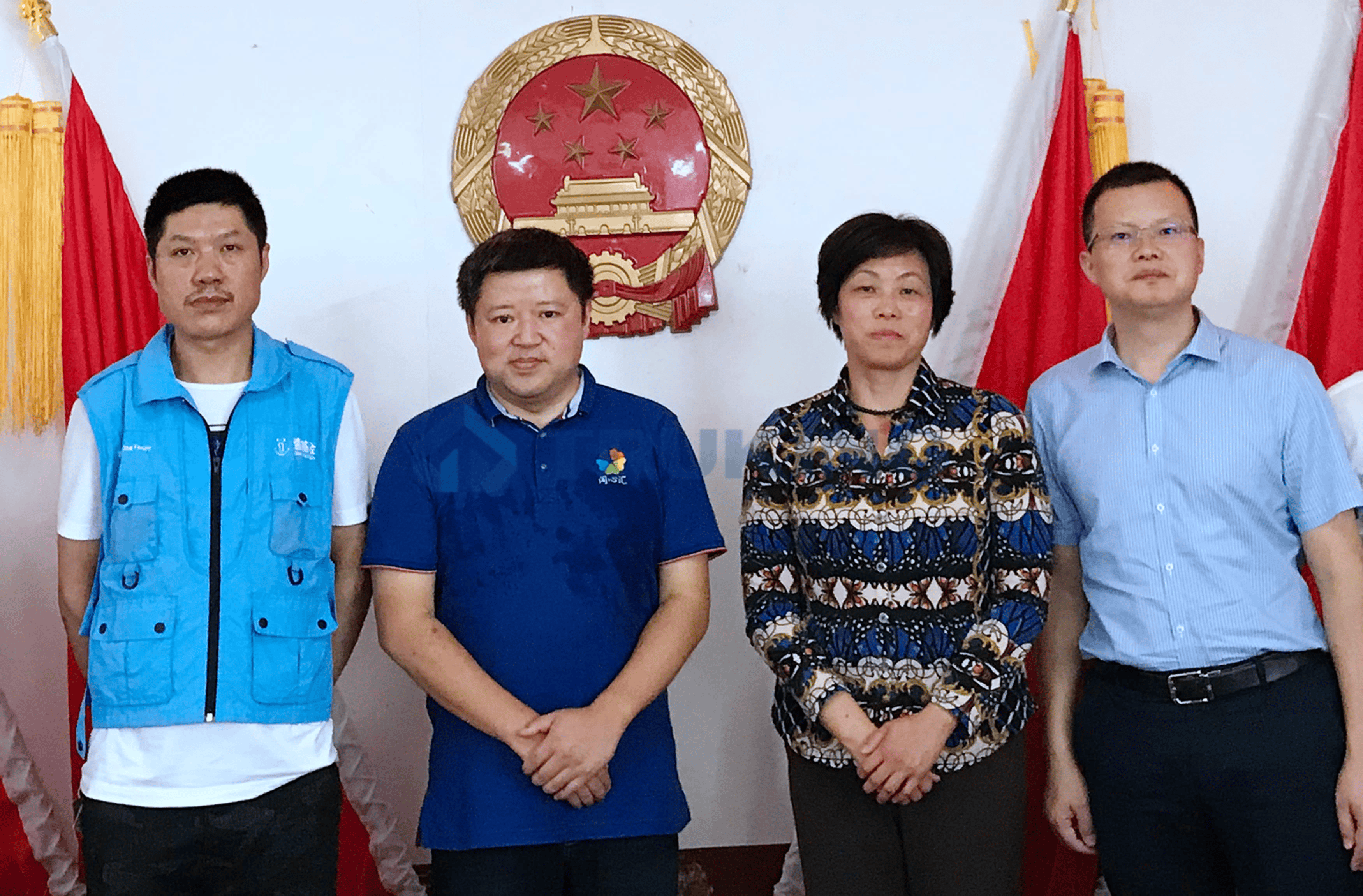 宁乡市委常委、市委统战部长钟利仁(中)了解OD平台,OD(中国)员工胡国正(左)公益之旅
