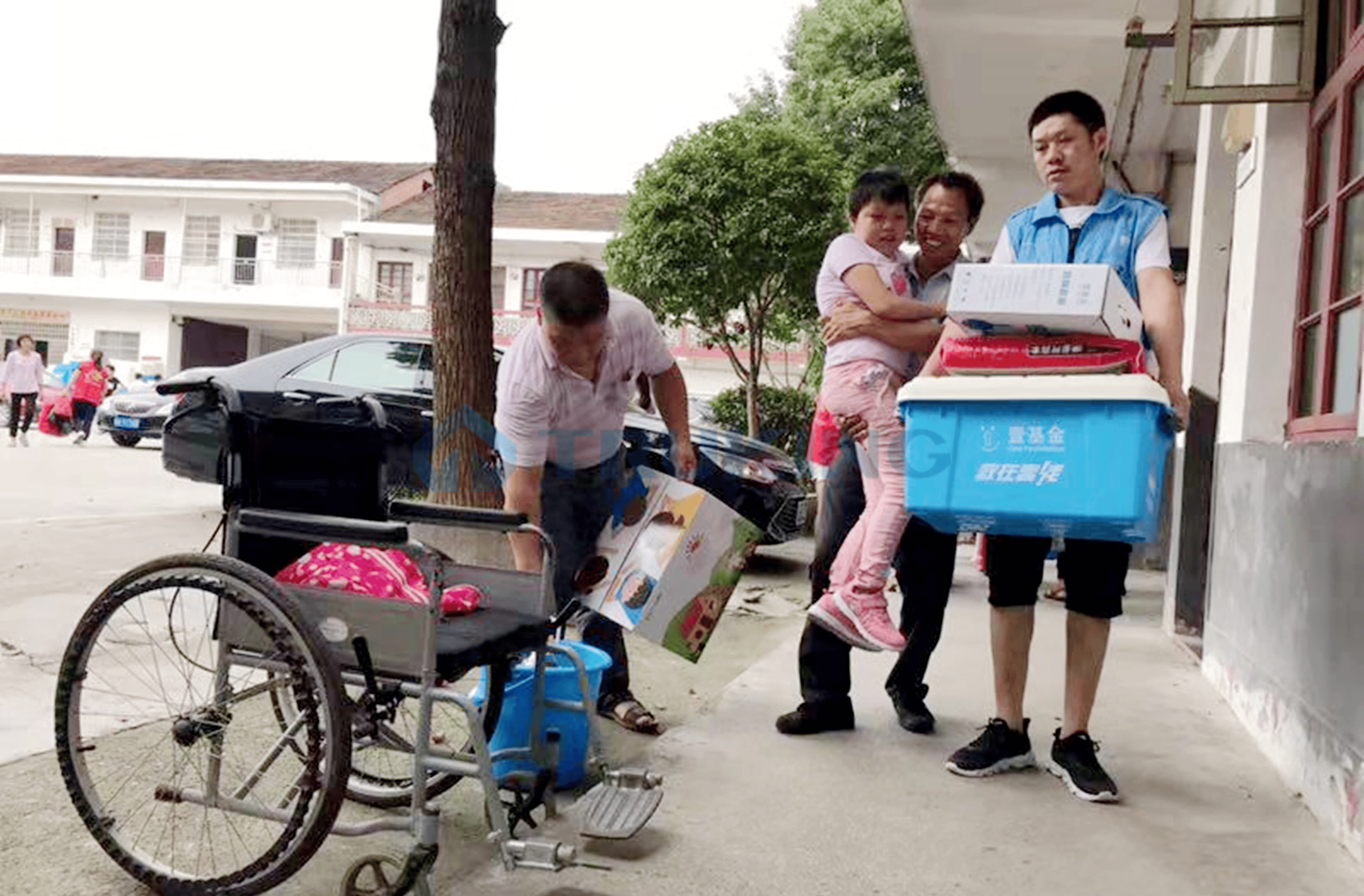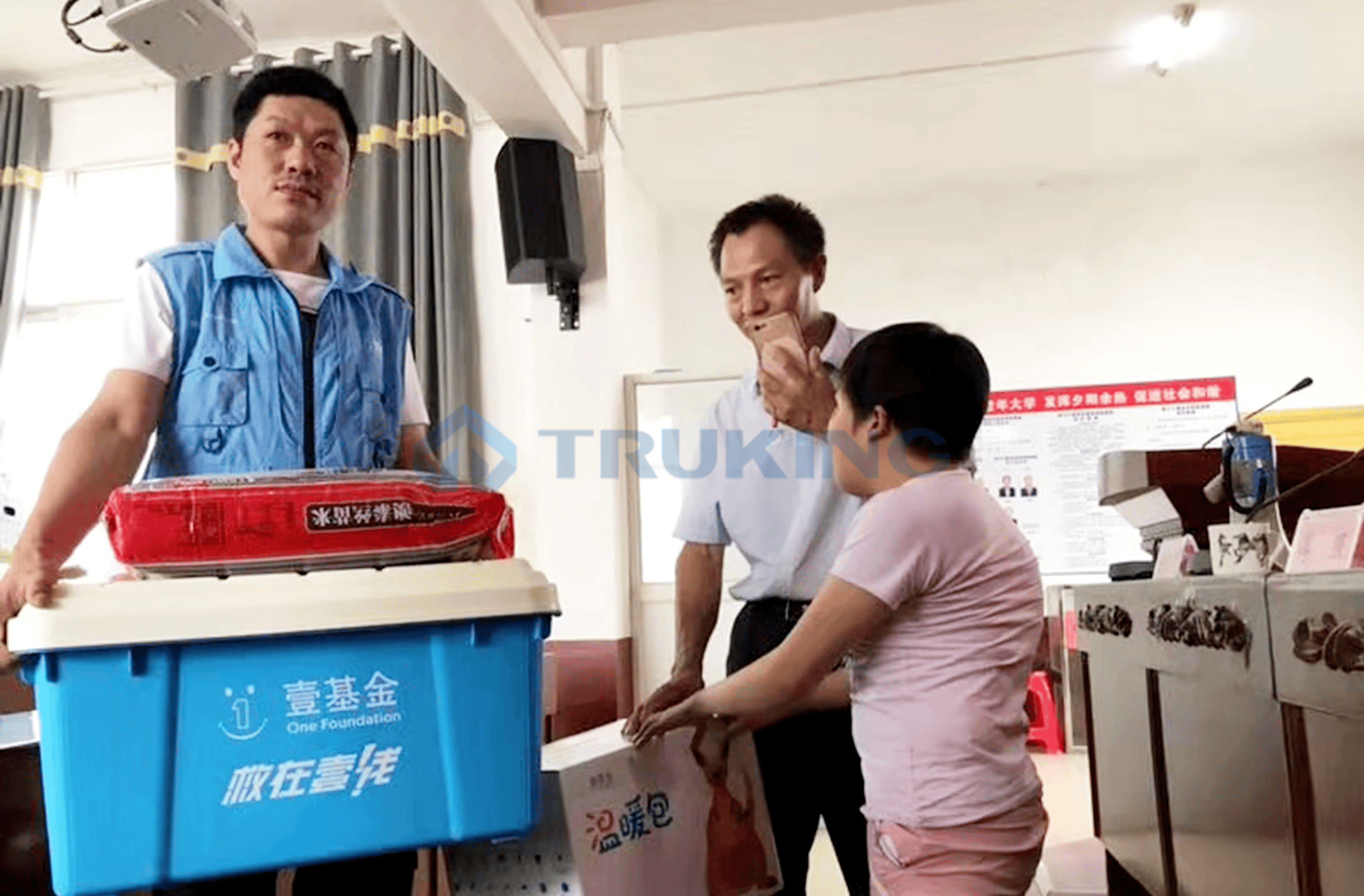 宁乡市西部山区的巷子口镇,7月21日,星期天,李连杰壹基金提供的粮油、洪灾生活包、夏季儿童包等各种慈善物资抵达这里,OD平台,OD(中国)科技员工胡国正作为公益志愿者,穿着蓝色马甲忙上忙下,发放物资,走访慰问困难群众。