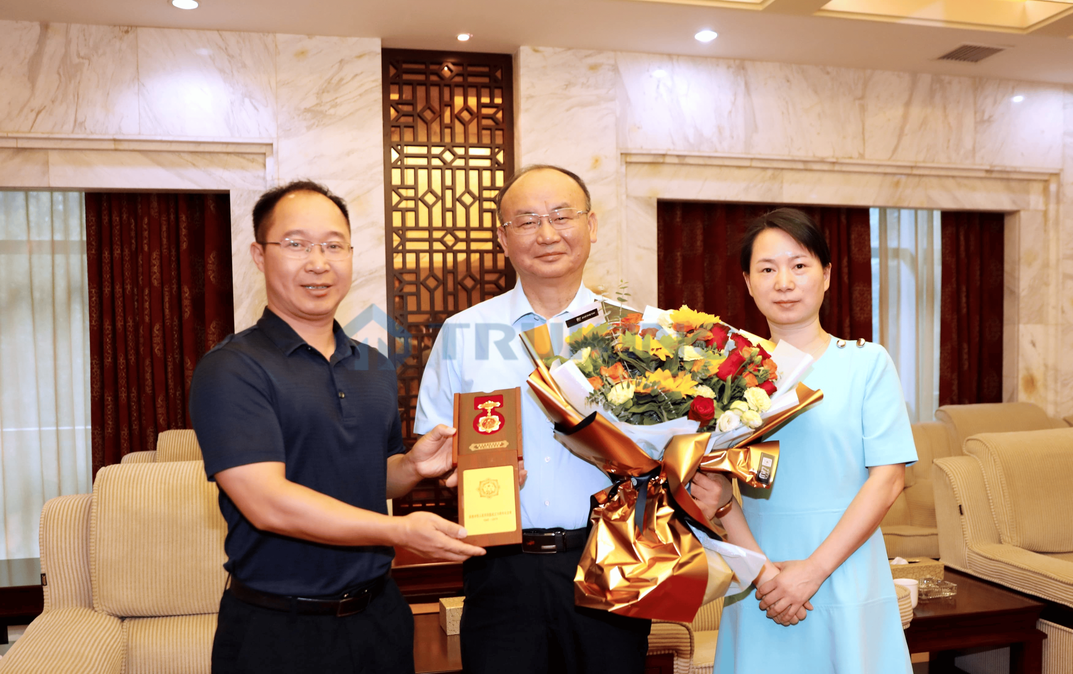 中华人民共和国70周年华诞到来之际,宁乡市总工会党组书记、副主席张立金9月21日莅临OD平台,OD(中国)科技,将党和国家授予的“庆祝中华人民共和国成立70周年”纪念章,交到OD平台,OD(中国)科技董事长兼总裁唐岳手上。张立金表示,纪念章代表着党和国家的嘉奖与嘱托,并向唐岳表示祝贺。
