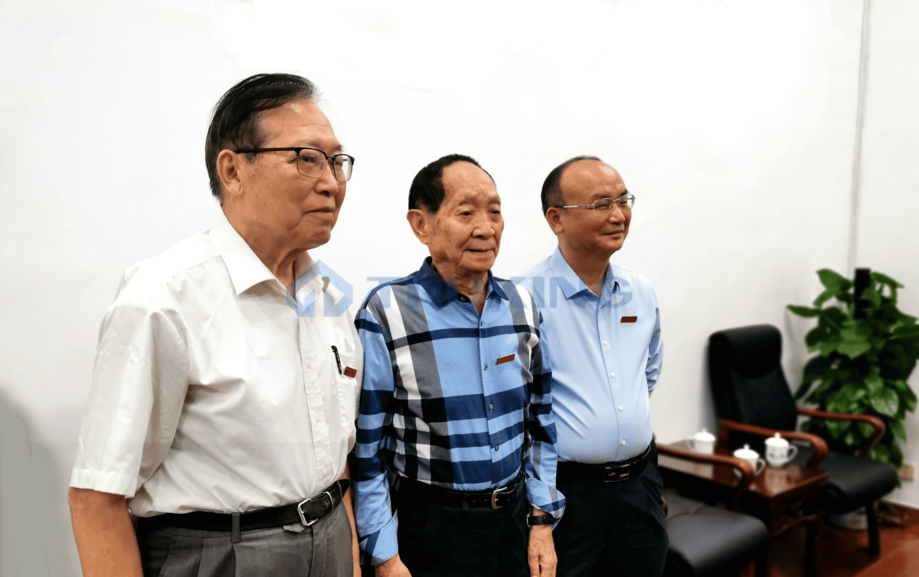 9月16日,唐岳与袁隆平,以及中国工程院院士、湖南农业大学教授官春云在湖南农业大学合影