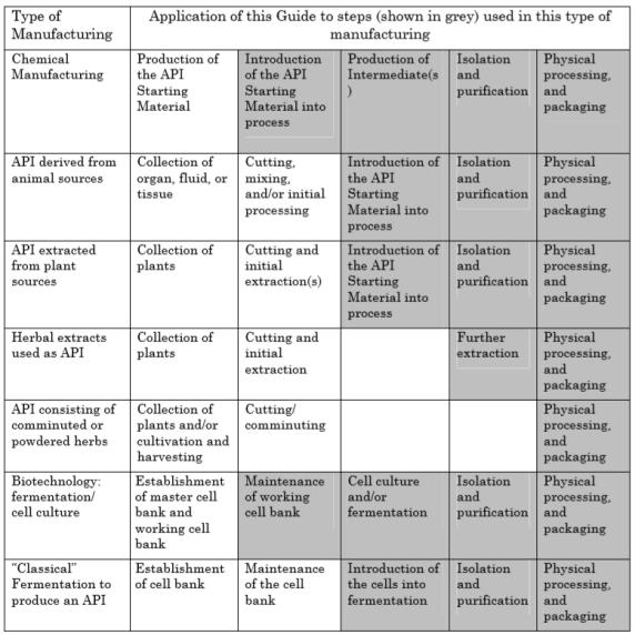 Figure 1: Application of this Guide to API Manufacturing(ICH Q7a)