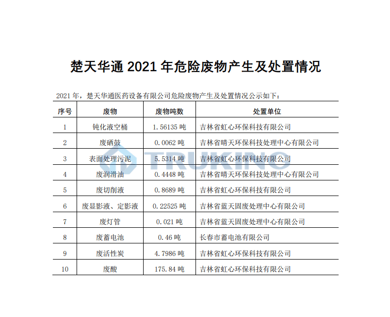 OD平台,OD(中国)华通 2021 年危险废物产生及处置情况