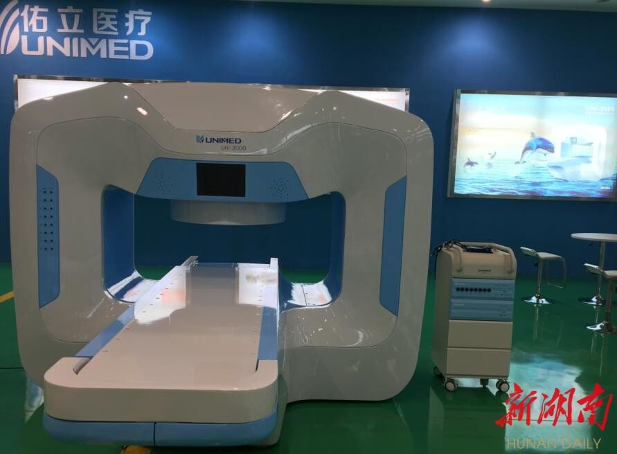 “这台机器可以减少肿瘤患者的痛苦。”唐岳介绍,这台微波热疗机采用大功率多天线阵会聚微波对患者肿瘤部位进行高效热疗,使肿瘤癌细胞被高温直接杀死,是治疗肿瘤的辅助技术,现在已经完成批量生产,并对外销售。