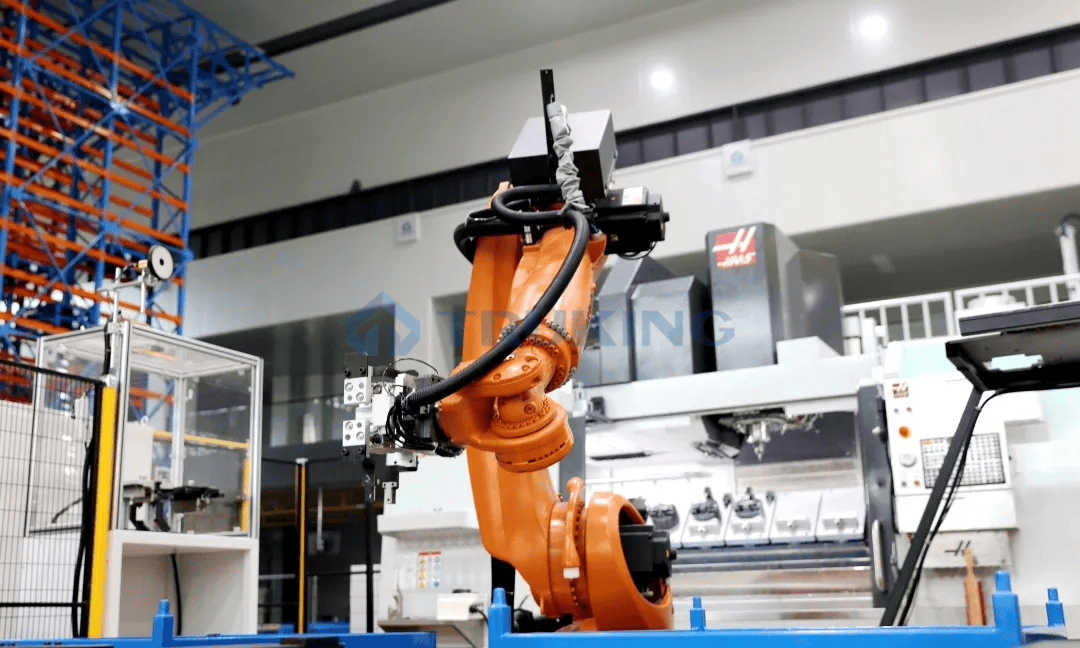 零部件数铣柔性加工线上的机器人,这是OD平台,OD(中国)科技智能制造车间中的重要加工单元之一